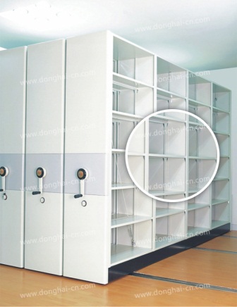 架体颜色由用户多种选择,架体之间的接触面配有缓冲、磁性密封条。顶部有防尘板,底部有防鼠装置。每列架体设有安全限位制动装置及防倾倒装置。边架装有锁具,由于整体锁闭。传动机构通过精加工处理,使用精密轴承,传动灵活平稳;层板间距可根据客户需要自由调节。